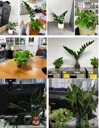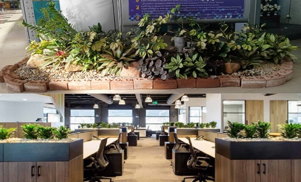 การมองต้นไม้สีเขียวสามารถช่วยลดความเครียดและทําให้รู้สึกผ่อนคลายได้ ต้นไม้ช่วยเพิ่มความสวยงามและทําให้บรรยากาศในสํานักงานดูสดชื่นและน่าอยู่ยิ่งขึ้นการมีต้นไม้ในสํานักงานสามารถช่วยเพิ่มสมาธิในการทํางานและกระตุ้น ความคิดสร้างสรรค์ได้ “มาช่วยกันดูแลและปลูกต้นไม้ในสํานักงานกันเถอะ (รักษ์โลก)”