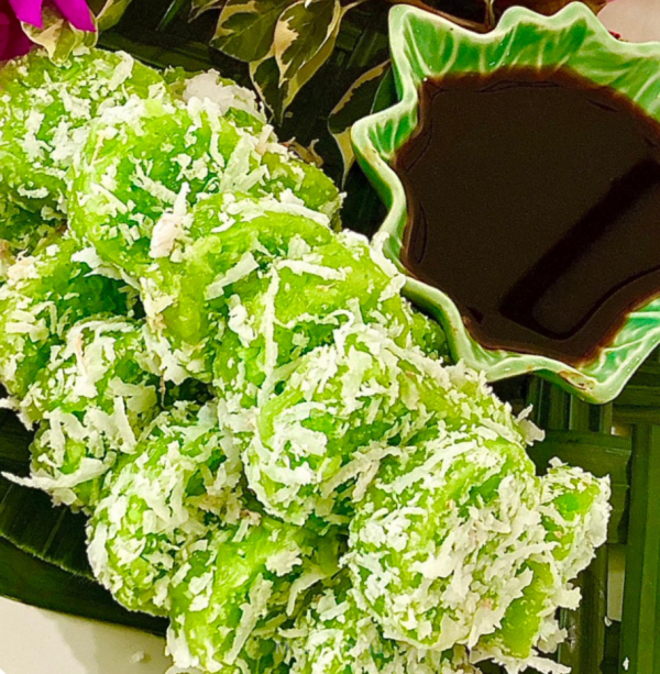 ๓. เตรียมทำน้ำใบเตย เริ่มจากเอาใบเตยมาโขลก-หั่นละเอียดเพื่อคันน้ำ